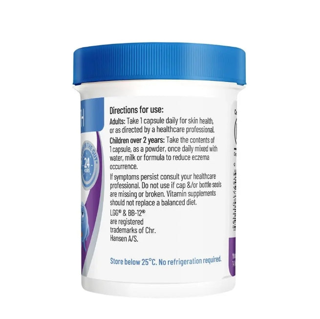 Children over 2 years: Take the contents of 1 capsule, as a powder, once-daily mixed with water, milk or formula to reduce eczema occurrence.
